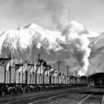 Download: Train at Springfield on the South Island Midland Line, with the Torlesse Range in the background.1940`S