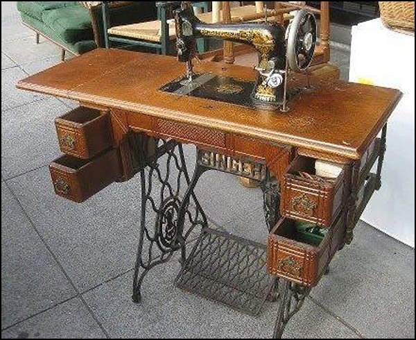 I learned to sew on one of these and had one before buying a beautiful electric Singer. More than being a fabulous mechanical invention it was a visually attractive utilitarian piece of furniture.