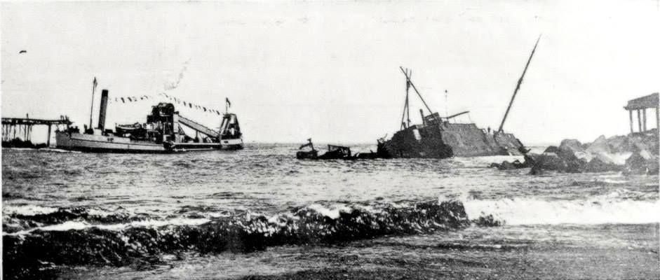 Arrival of the Greymouth Harbour Boards new dredge, the Mawhera, March 1909.