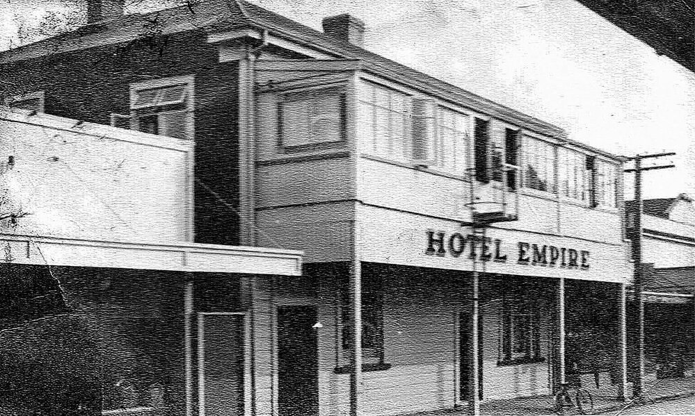 According to Henry Pierson in his book "The Crooked Mile" the Empire Hotel was originally called the Masonic. There was a music shop beside it and next to that was where Jim Fairlie began his fruit and vege business back in the 1950s, on the East side of Revell Street. Gordon Bryant shoe shop was on the North side of the Empire Hotel. Towards the end of the time it was called Masonic it was owned by someone called Morgan. Then Dick Furness ran it followedby Ted Sheriff then an English man called Tommy Thompson. At that time Henry who worked for Groufskys did some repairs to the building. Next was George Agnew until the Licensing Commission decided to reduce the number of Hotels in Hokitika. The Empire burned down in 1959.