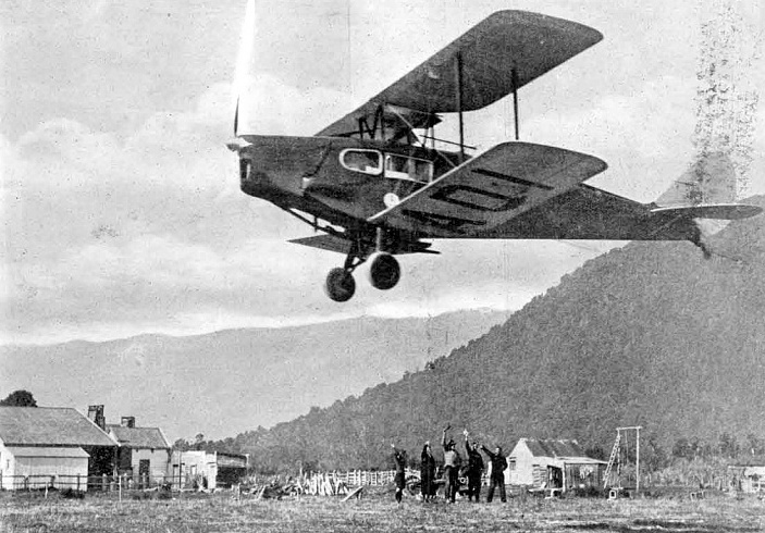 Bernard Hempseed ZK-ADI leaving Crons Homestead, Haast, 1935.