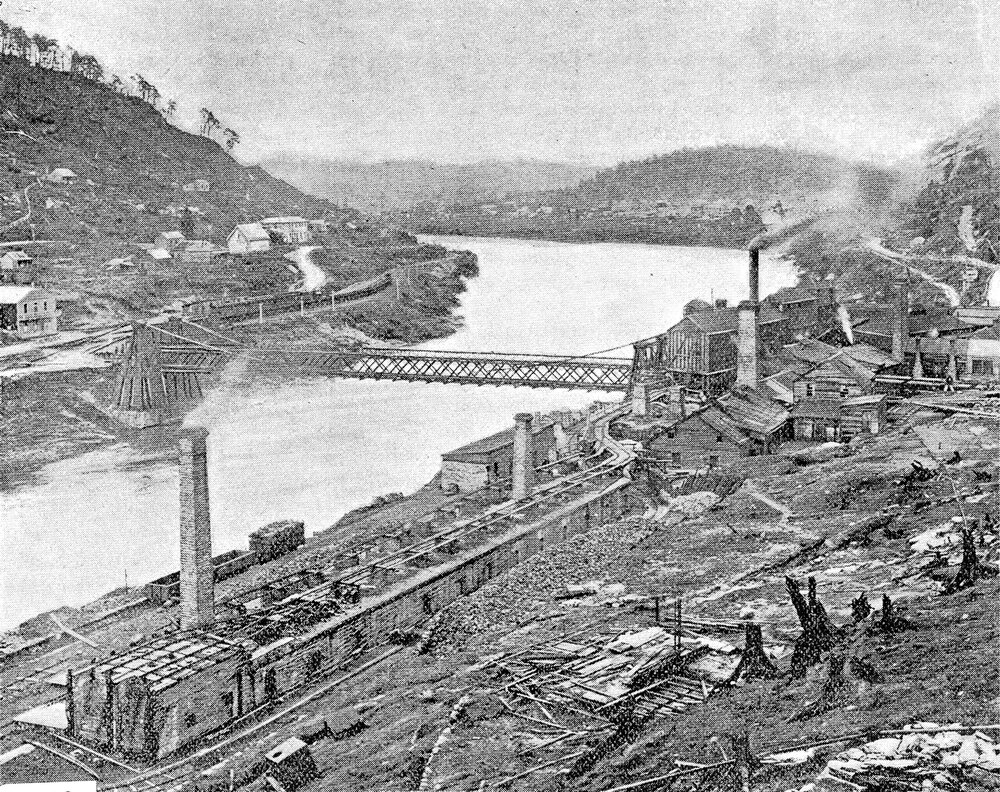 Brunnerton, with the Brunner Mine works in the foreground.1898.
