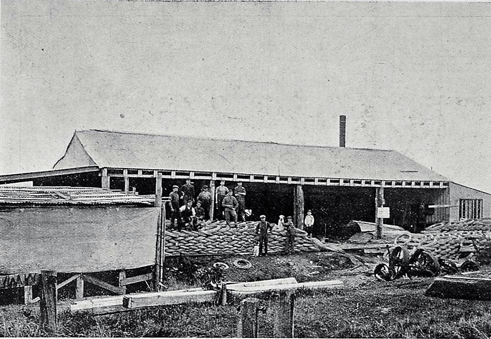 Hokitika Stave pipe factory Hokitika 1908. Constructing wooden pipes for the great Otira Tunnel.