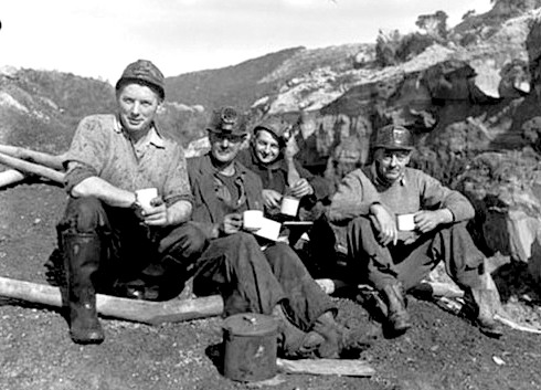 Stockton Mine - Joe Morgan on the left , a Shearer beside him.