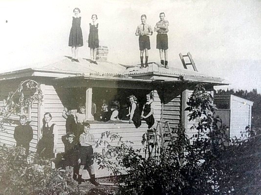 Gavin Martin The smaller girl on the roof is Rosemary O'Brien. Tom and John O'Brien are among the boys. This photo was taken in the late 1930's so your father would have most likely finished school by then.