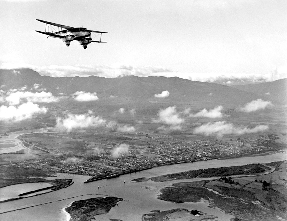 West Coast New Zealand History (9th Aug 2021). de Havilland ZK-AGT in flight over Westport 1939.. In Website West Coast New Zealand History. Retrieved 25th Apr 2026 01:11, from https://westcoast.recollect.co.nz/nodes/view/20278