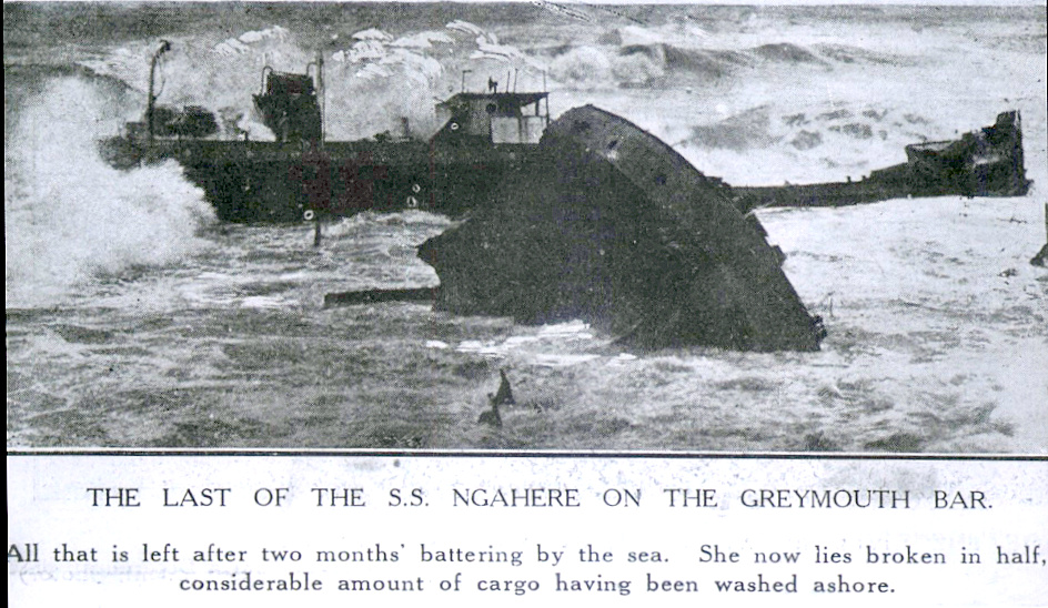 West Coast New Zealand History (2nd Jun 2018). The last of the S.S. Ngahere on the Greymouth Bar, July 1924.. In Website West Coast New Zealand History. Retrieved 17th Apr 2026 22:34, from https://westcoast.recollect.co.nz/nodes/view/21743