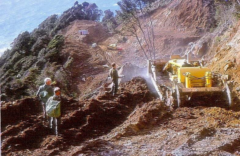 Haast road construction north of Grant Creek.1960.