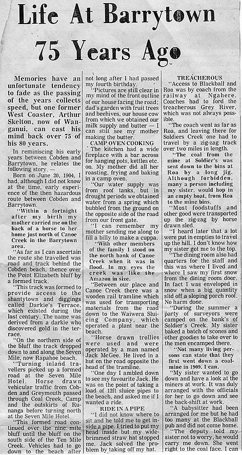 West Coast New Zealand History (1st Jan 2023). Arthur Skelton remembers life at Barrytown 75 years ago - written in 1980.. In Website West Coast New Zealand History. Retrieved 25th Apr 2026 01:10, from https://westcoast.recollect.co.nz/nodes/view/22710
