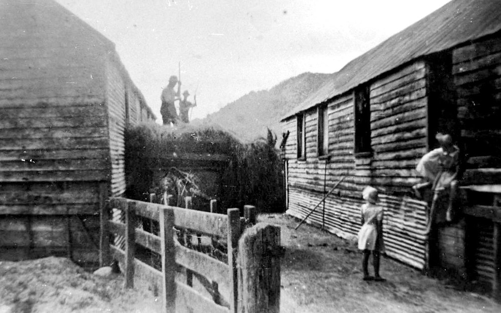 Haymaking on Watson Farm at Crushington (Farm was called Mountain View). Owned initially by Thomas Richardson Watson and Alexander Richardson Watson (brothers).