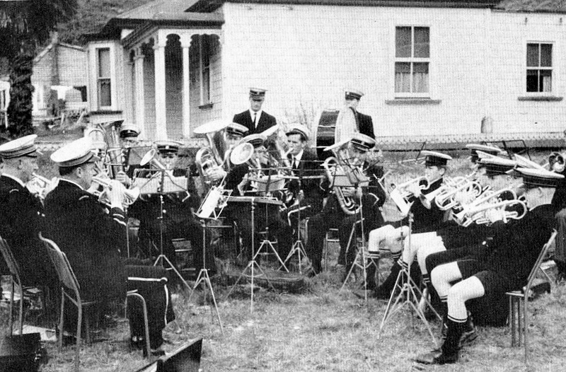 Inangahua Silver Band playing at the opening of Blacks Point Museum, 1965.