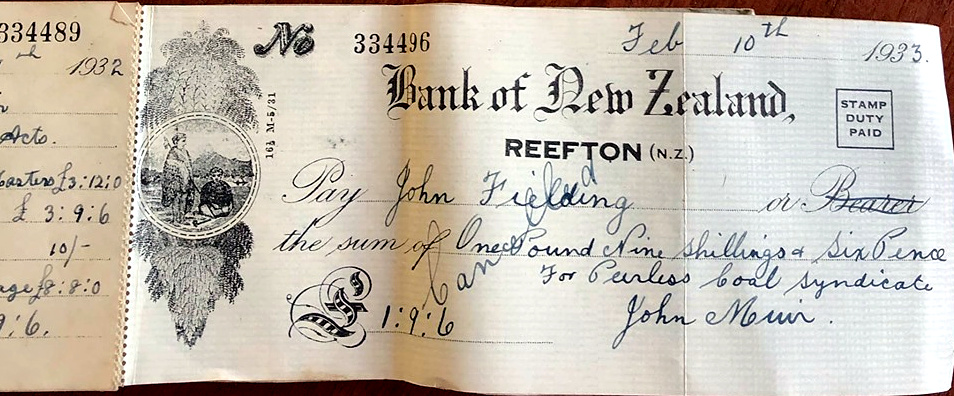 West Coast New Zealand History (1st Jun 2019). Cheque to John Fielding from the Reefton BNZ bank, 10th February 1933.. In Website West Coast New Zealand History. Retrieved 29th Apr 2026 21:49, from https://westcoast.recollect.co.nz/nodes/view/25400
