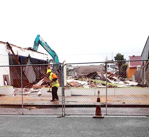 Darrell Latham's old Chemist shop being demolished, Reefton, June 2019