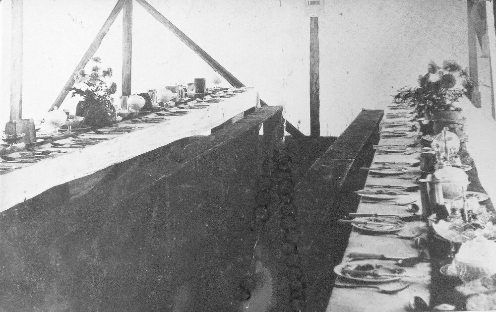 West Coast New Zealand History (19th Apr 2023). Tables laid for a meal in Steele`s Tent Boarding House, Rewanui. ca.1900s.. In Website West Coast New Zealand History. Retrieved 29th Apr 2026 12:45, from https://westcoast.recollect.co.nz/nodes/view/25545