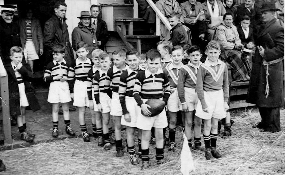 Cobden vs Runanga Midgets,curtain raiser to West Coast vs France game at Wingham Park.1951.