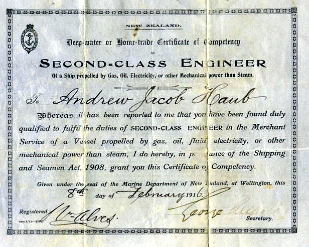 West Coast New Zealand History (26th Aug 2019). Certificate of Competency for Andrew Jacob Haub from Nelson Creek, 18th February 1916.. In Website West Coast New Zealand History. Retrieved 28th Apr 2026 12:15, from https://westcoast.recollect.co.nz/nodes/view/25929