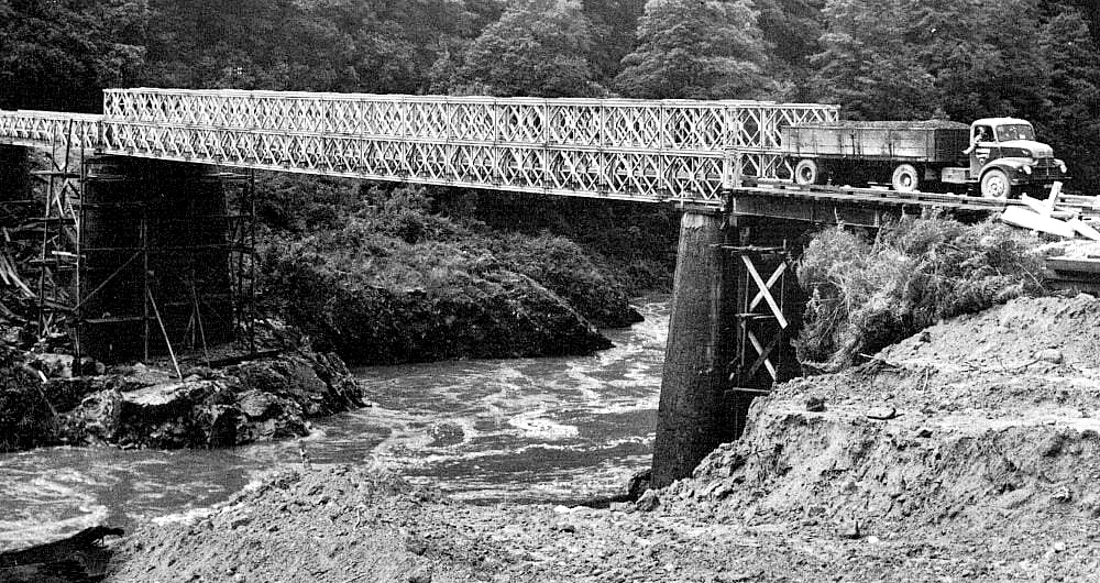 West Coast New Zealand History (29th Oct 2023). Temporary bailey bridge over Buller River, 1961. In Website West Coast New Zealand History. Retrieved 28th Apr 2026 01:58, from https://westcoast.recollect.co.nz/nodes/view/26109