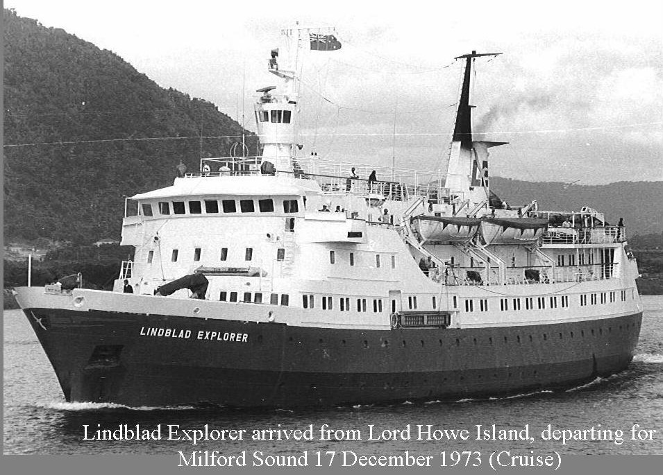AddBy: William Gray12th Nov 2020 7:06PMLINDBLAD EXPLORER. Built in Finland in 1969, designed for cruising in Antartic and Artic conditions, she had several owners since being built in 1969, gross tonnage 2346, length 239ft x 46ft x13ft 9in, H.P. 3,800. The photograph captures her departure for Milford Sound on the 17th of December 1973, her visit had been planned back in August 1973, very hard to plan that far ahead here with the weather, river and bar conditions being a major factor. But it all went to plan. On the 11th of February 1972, she ran aground down in the Antartic, after all passengers had been rescued by the Chilean Navy she was refloated and towed to Argentina, then towed to Norway for repairs. Her end came on the 23rd of November 2007,when under the EXPLORER she struck heavy ice near the South Shetlands, the hull was breached which flooded the engineroom, and she lost power. All the Passengers and crew were rescued by other ships in the vicinity, and she capsized and sank in over 1,000 metres of water. Even though her stay here was only for eleven hours, she is the only cruise ship to berth here and no doubt the will be the one and only. LINDBLAD EXPLORER, renamed SOCIETY EXPLORER, in 1985. later renamed EXPLORER. LINDBLAD EXPLORER, Arrive Greymouth 6.0am 17th of December 1973, from Lord Howe Island, Departed 5.0pm 17th of December 1973 for Milford Sound. Photograph G. Ferguson.