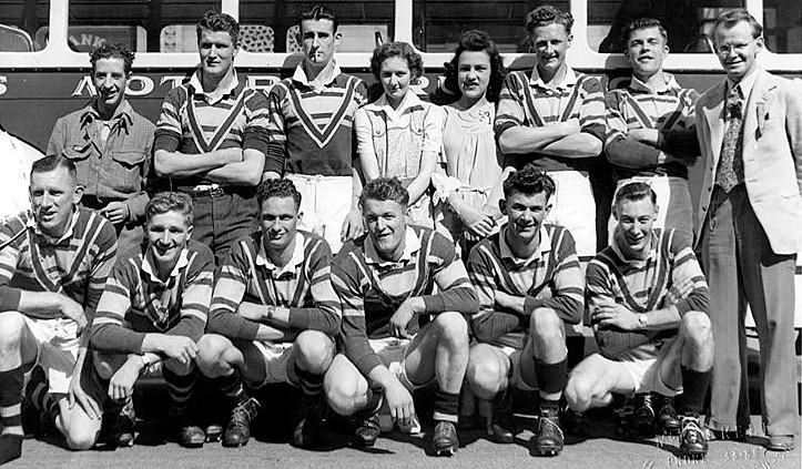 1st inn back row is Butch Harding next to Graham Herrick,Morrie Richardson by him 3rd in back Geoff Scalmer on the other side of the ladies. Marley 4th in the front row, Gourdie last front row.