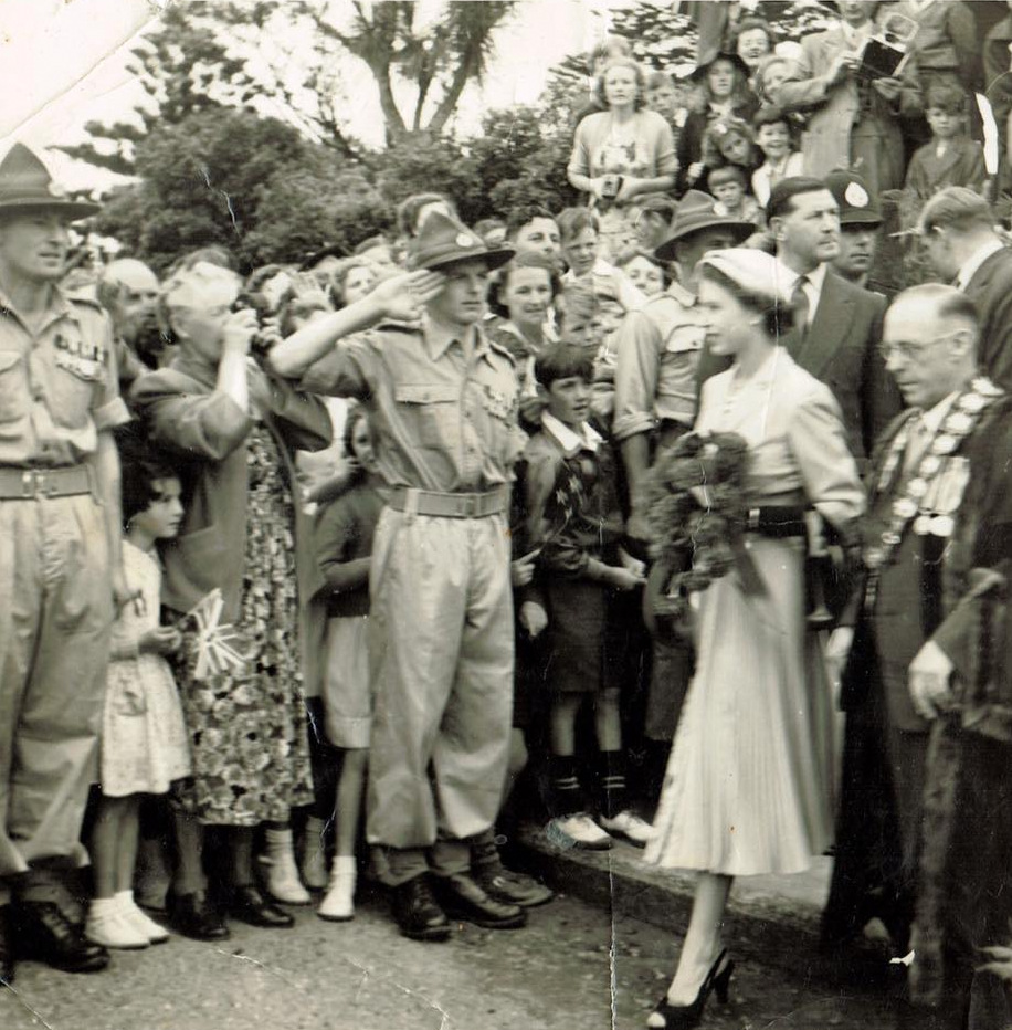 Sergeant Major Frederick C Larsen meets the Queen in Greymouth
