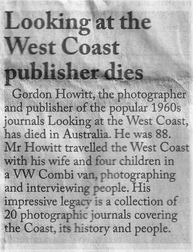 West Coast New Zealand History (1st Oct 2019). Obituary Gordon Howitt 7 Sept 2019.. In Website West Coast New Zealand History. Retrieved 27th Apr 2026 19:00, from https://westcoast.recollect.co.nz/nodes/view/26190