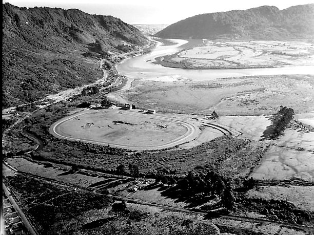 West Coast New Zealand History (15th Nov 2022). Aerial view of Omoto Racecourse, 22 June 1958.. In Website West Coast New Zealand History. Retrieved 24th Apr 2026 23:20, from https://westcoast.recollect.co.nz/nodes/view/26409