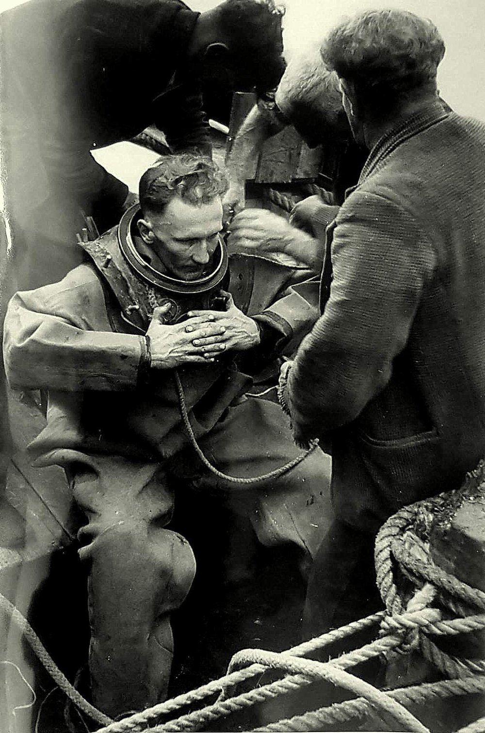 Jack Godfrey preparing for a dive, Greymouth,1950. -2 PHOTOS-