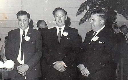 Alan Leckie on right next to Kevin Wyatt at Railway Social, Greymouth.