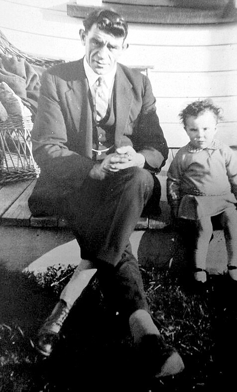 Martin Mc`Enaney and niece Mary Roberts on the the veranda of his house in Threadneedle St. Greymouth.