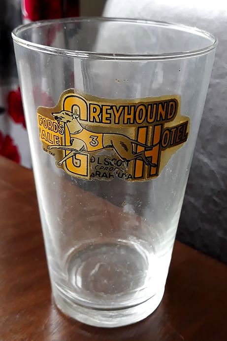 Glass from the Greyhound Hotel,Arahura. D.L. Scott (Proprietor) .