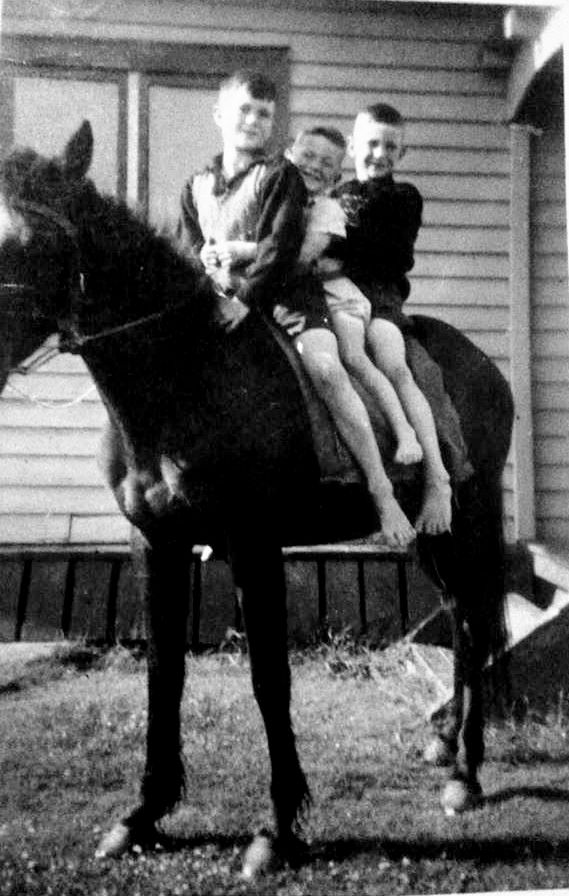 Gillman brothers Joe, Alan and Gary on Joe's horse Cobber.
