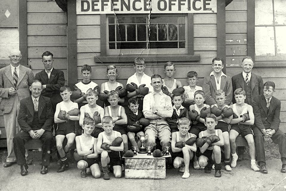 West Coast New Zealand History (28th Oct 2021). Boxers in front of Defence Office,Tainui St- Cyril Nelson in front row, far right.. In Website West Coast New Zealand History. Retrieved 25th Apr 2026 22:46, from https://westcoast.recollect.co.nz/nodes/view/26887