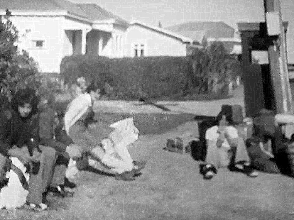 Grey High Hostel fulltimers,waiting for the NZR bus home to South Westland1978.