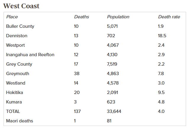 In 1918 the West Coast had a slightly higher population than today, some smaller towns now were bigger back then, places like Reefton, Kumara etc