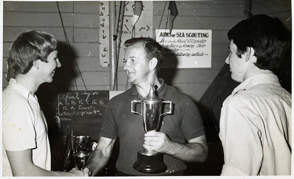 Steve Lucas, Harry Cox, Keith Williams at Prize Giving, Greymouth Yacht Club, 1968.
