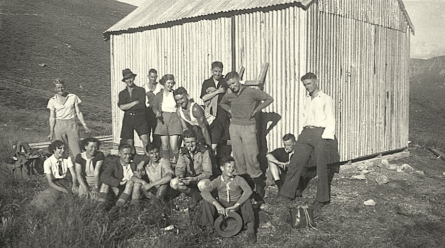 West Coast Alpine Club members at Carroll Hut on the Kelly Range.ca.late 1930`s.