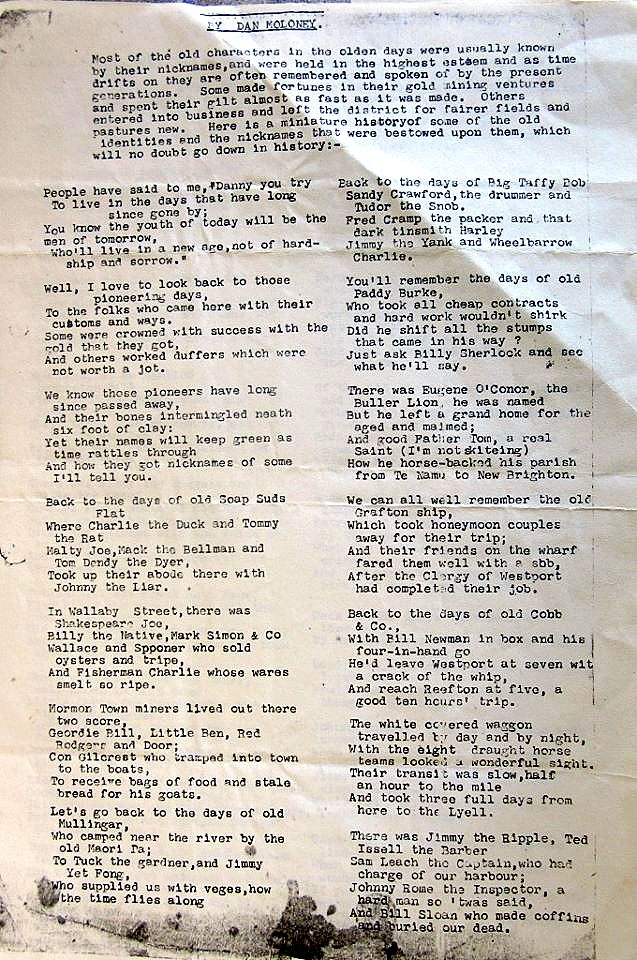 West Coast New Zealand History (9th May 2020). 3 pages of Dan Maloney`s verse on old Buller characters. . In Website West Coast New Zealand History. Retrieved 19th Apr 2026 10:46, from https://westcoast.recollect.co.nz/nodes/view/27850