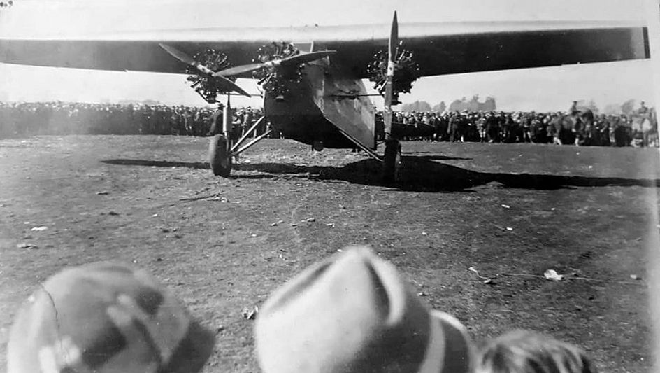 West Coast New Zealand History (3rd Aug 2023). Looks very much like Sir Charles Kingsford Smith with the Southern Cross either at Brisbane or Mascot.. In Website West Coast New Zealand History. Retrieved 19th Apr 2026 10:40, from https://westcoast.recollect.co.nz/nodes/view/27867
