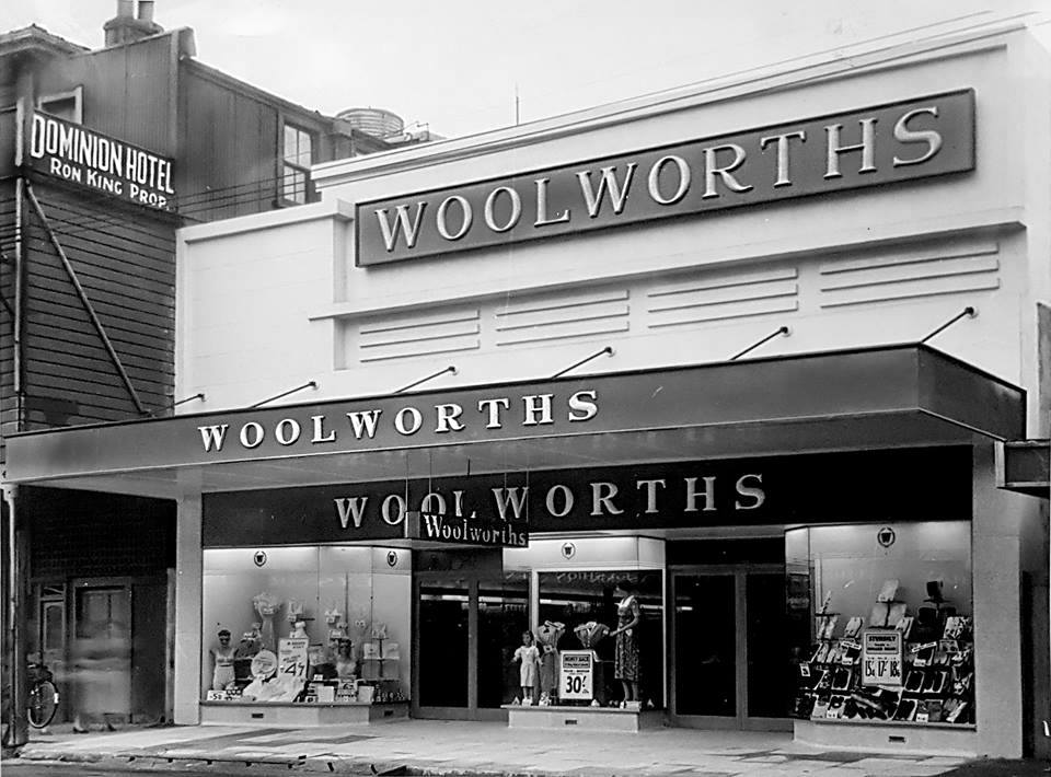DescriptionWoolworths Store, next to the Dominion Hotel, Greymouth.Date of Photoca.early 1950`sMap[1] ContributorTony Kokshoorn