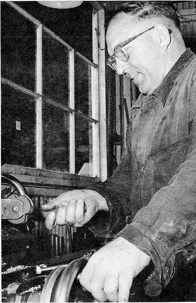 Foreman fitter and turner, Cyril Hector - working on the big lathe out at Strongman Mine.ca.1965.