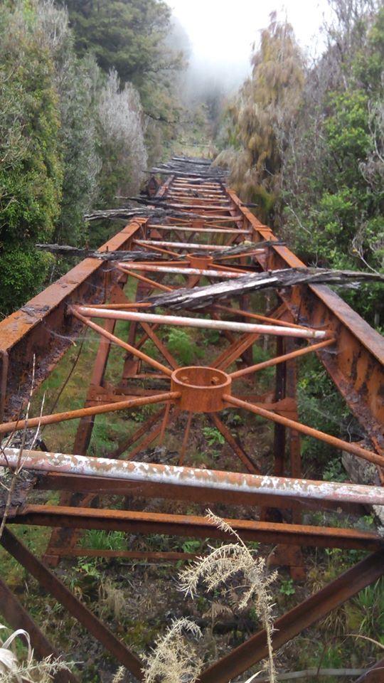 The upper bridge on the Denniston Incline - dynamited at one end to deny access