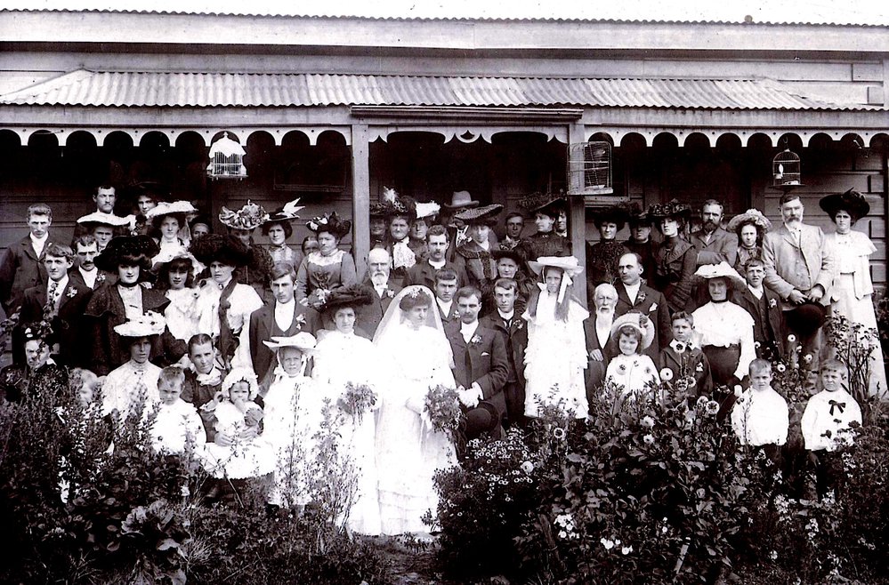 AddBy: Murray Ellis15th Jul 2020 8:24AMJohn Henry Williams Farther of the bride standing directly behind the bride. His wife Annie Maria Williams front row 3rd from bride holding a little girl.