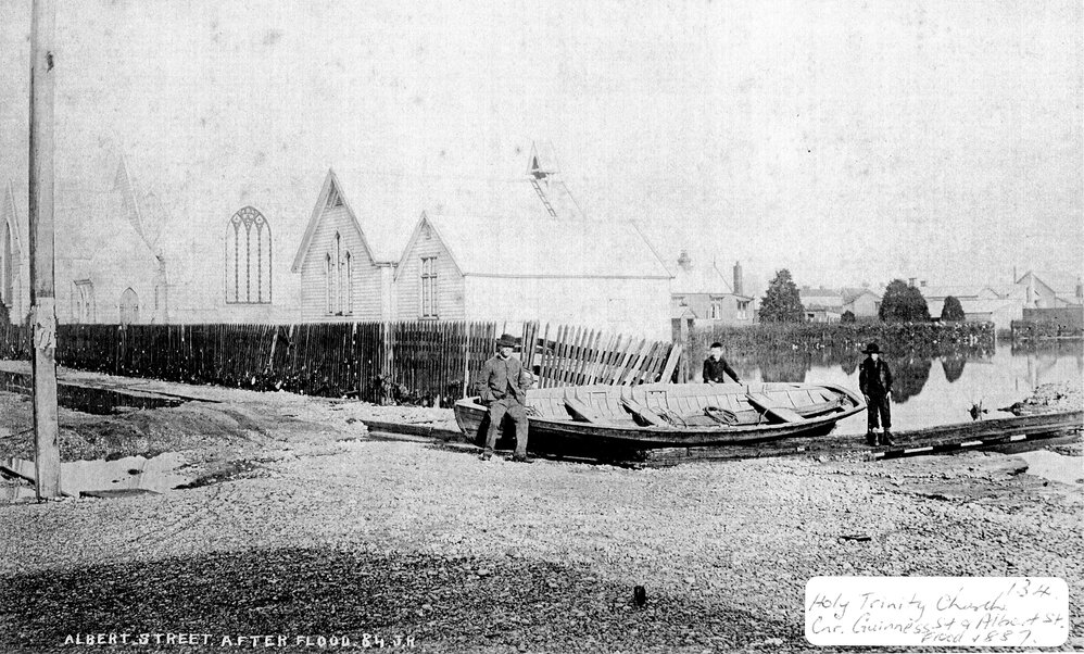 West Coast New Zealand History (5th Oct 2025). Albert Street after a flood - Holy Trinity Church in background. Greymouth.1887.. In Website West Coast New Zealand History. Retrieved 19th Mar 2026 08:46, from https://westcoast.recollect.co.nz/nodes/view/28212