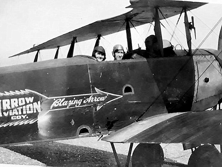 Two West Coast women sit in the 'Blazing Arrow' bi-plane 1924.