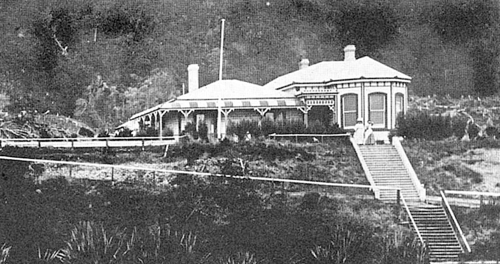 Jessie Steer's House North Beach - Lakeside Villa, destroyed by fire in 1947 after a close shave in 1909. Lake Ryan,Cobden.