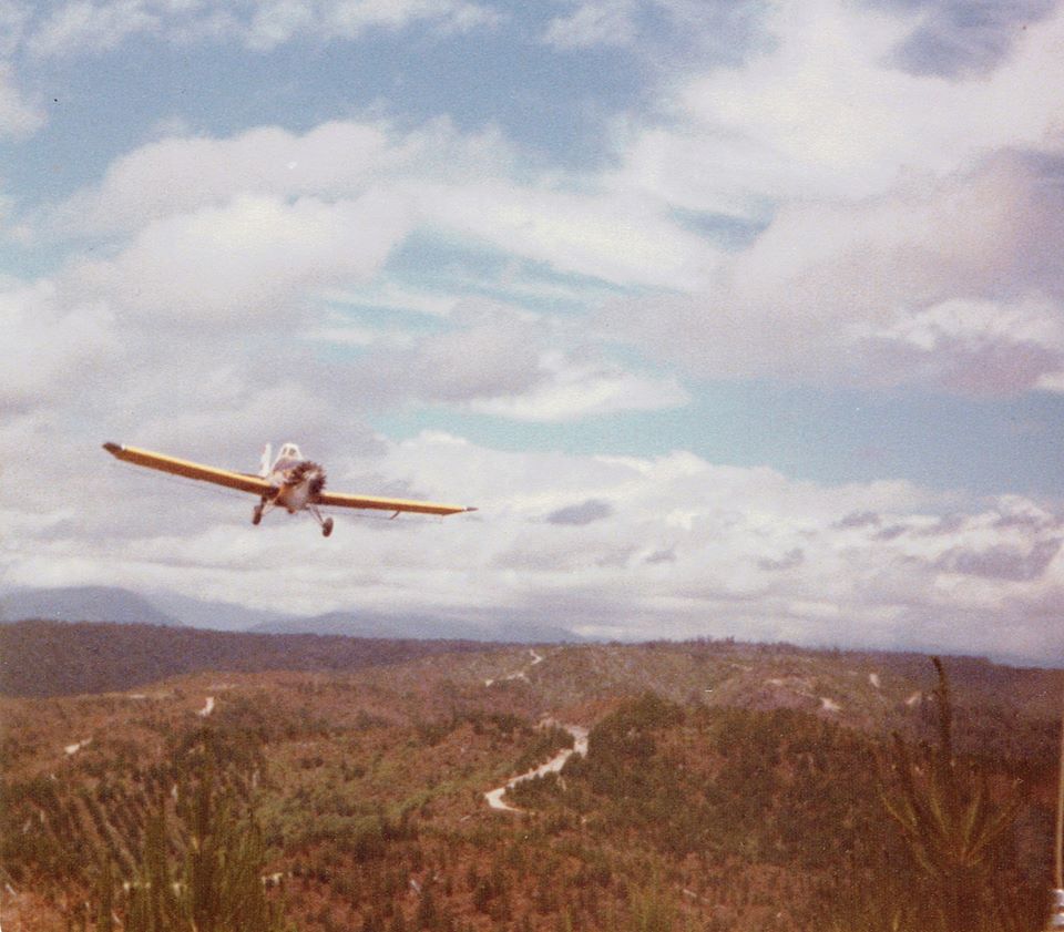 West Coast New Zealand History (14th Aug 2020). Thrush Commander during dothistroma spraying ops in Mawhera Forest. 1979. In Website West Coast New Zealand History. Retrieved 13th Apr 2026 23:54, from https://westcoast.recollect.co.nz/nodes/view/28289
