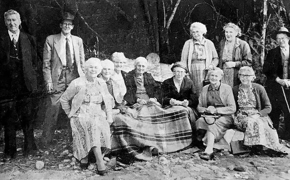 12 members of the Aynsley family of Greenstone, attending the Kumara District Celebrations, 1960.