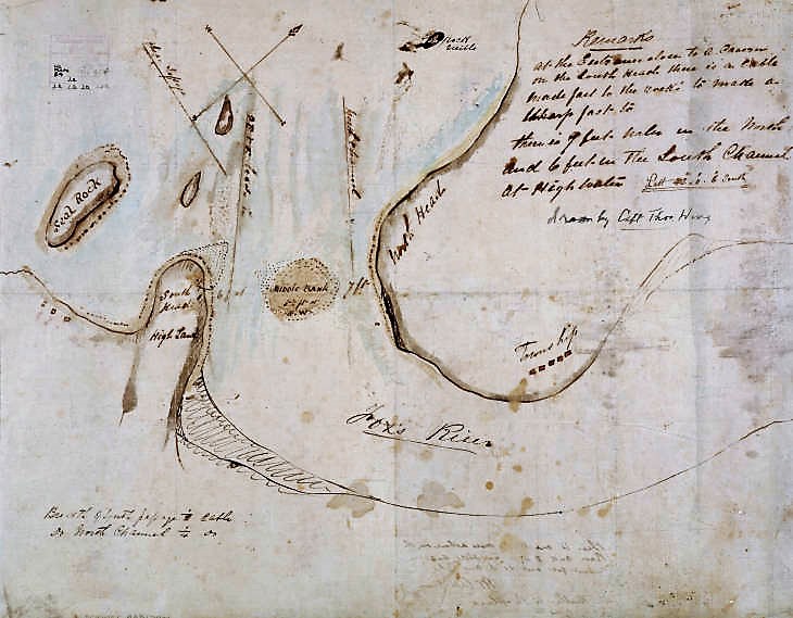Nautical map of the entrance to Fox River drawn by Captain Thomas Wing 1840's.