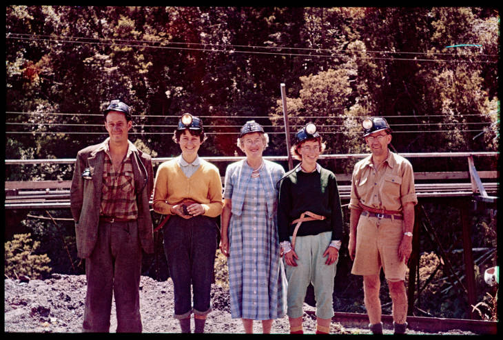West Coast New Zealand History (1st Aug 2025). Group at the Strongman Mine: (from left to right) Mike?, Bev Grundie?, Alethea Rowntree, Frances Rowntree and John Burgess Rowntree1959. In Website West Coast New Zealand History. Retrieved 13th Apr 2026 20:11, from https://westcoast.recollect.co.nz/nodes/view/28328
