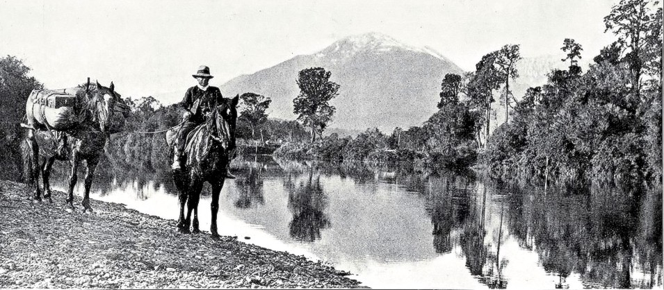 The mailman with his packhorse, Okuru, South Westland 1930.